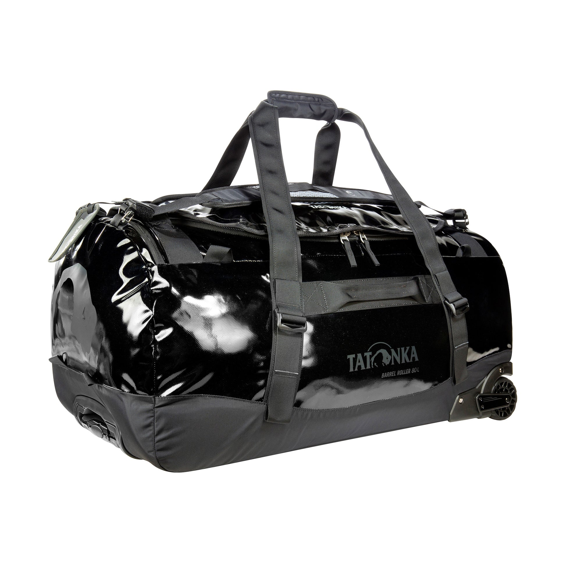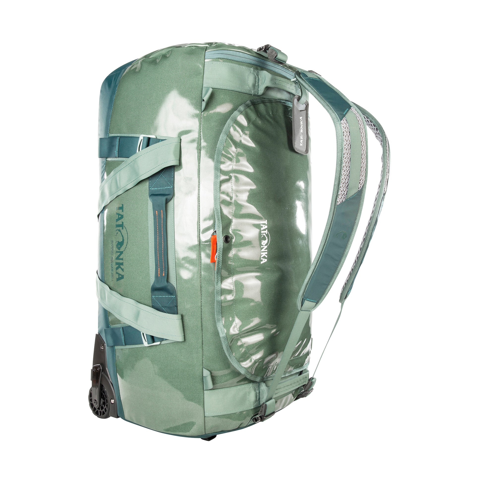 Trolley bag with 80-litre volume, two silent wheels, telescopic handle and a large opening. Made of TPU-coated nylon material.
